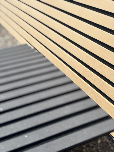 indretning. Vores akustikpaneler er fremstillet med trælameller i forskellige nuancer og filtbagside i rolige